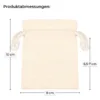 Eine Auswahl von 10 originellen Baumwollbeutel in der Größe 8 x 10 cm, deren Naturfarbe für fast jede Situation perfekt geeignet ist. Das angebotene Set ist universell einsetzbar, da die Beutel je nach Situation auf vielfältige Weise verwendet werden können.