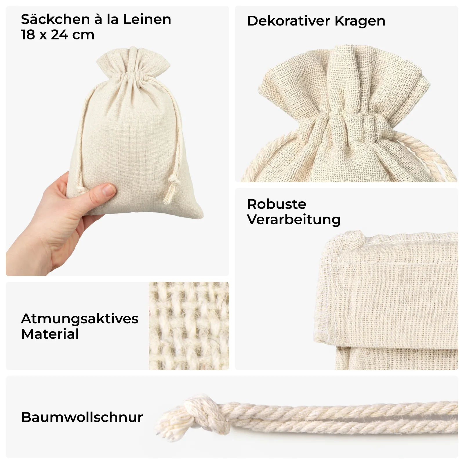 5 St. Säckchen à la Leinen 18 x 24 cm - natur